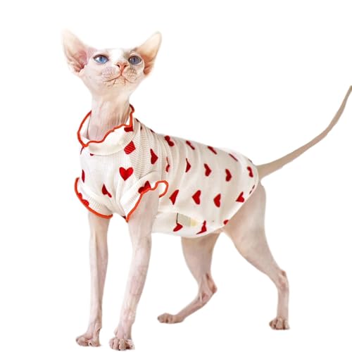 IUOUTG Hårlösa Kattkläder Sommar Sphynx Katt T-Shirts Söt Hjärta Print Kattklänning Elastisk Pullover Flicka Katter Kläder För Sphynx Cornish Rex Devon Rex Peterbald Små Hundar