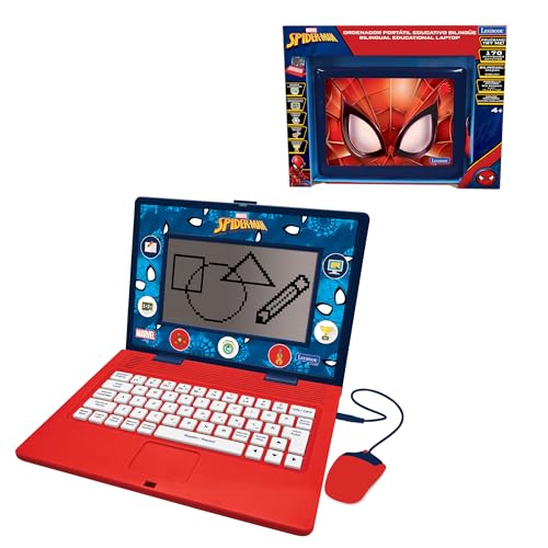 LEXIBOOK, Spider-Man, tvåspråkig dator och utbildning spanska/engelska, leksak för barn, 170 aktiviteter för att lära sig, spela spel och musik, storskärm, blå/röd, JC599SPi2LXB