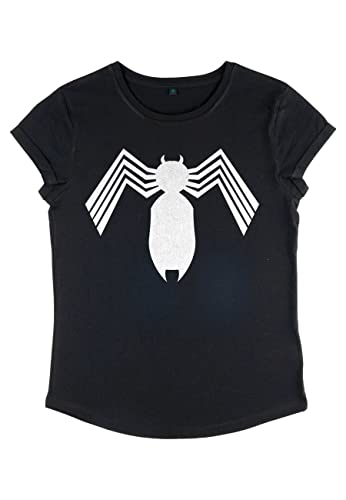 Marvel Kvinnors Spider-Man Classic-Alien Symbiote Icon Rolled Sleeve T-shirt, svart, S, svart, S