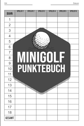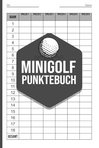 Minigolf Punktebuch für 6 Spieler: Punktezettel zum Eintragen für bis zu 18 Bahnen pro Spiel – Über 100 Spiele – Perfekt für unterwegs