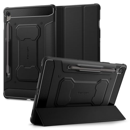 Spigen Rugged Armor Pro Fodral Designad för Samsung Galaxy Tab S10 FE (2025) / Galaxy Tab S9 (2023) Skyddsfodral med S Pen-hållare och laddningsstöd - Svart