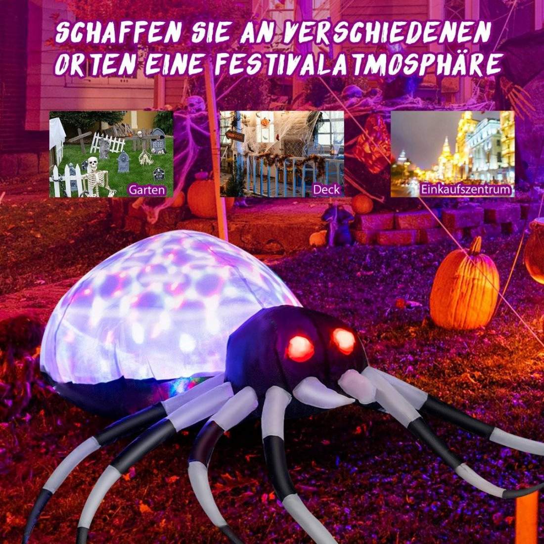 Uppblåsbar Halloween-spindel med pumpa och roterande LED-lampor Skrämmande spindeldekoration