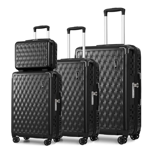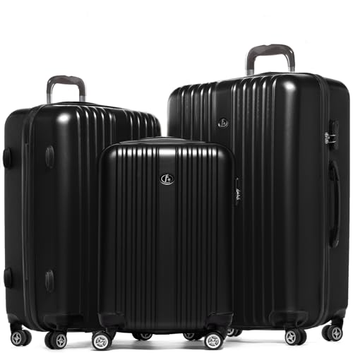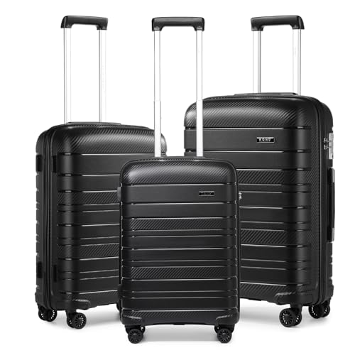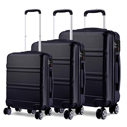 Kono Bagageset med 3 delar lätta 4 spinnhjul hårt skal vagn väska 20 tum/24 tum/28 tum, Svart, Sets of 3, Bagageset