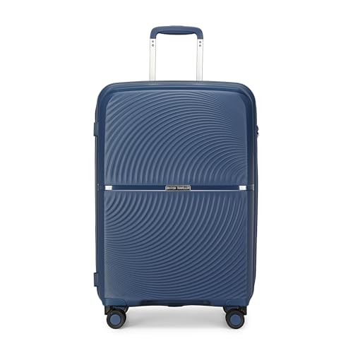Brittisk resenär resväska lätt PP hård skal vagn, mode resa handbagage kabinstorlek, TSA-lås checkfodral med 4 spinnhjul, NAKEN, M, Hårt skal bagage