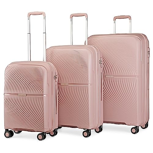 Kono Bagageset med 3 delar lätta 4 spinnhjul hårt skal vagn väska 20 tum/24 tum/28 tum, NAKEN, Sets of 3, Handbagage
