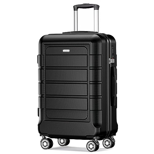 Kono 61 cm resväska lätt ABS + PC hårt skal vagn, mode resa checkfodral TSA-lås, handbagage med 4 spinnhjul, Svart, M, Mode
