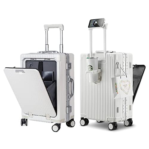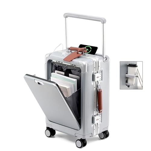 BEITH Främre öppen hård sida bagage, BS849-2 aluminiumram resväska med kopphållare, USB/Typ-C, bred dragstång, PC-skal, TSA tulllås, 360° dubbla spinnhjul, mjukt handtag, vattentät
