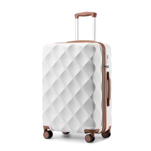 Brittisk resenär hållbar ABS + PC hårt skal bagage med 4 spinnhjul TSA-lås YKK dragkedja, gräddvit, M(medium 24inch), Hårt skal bagage