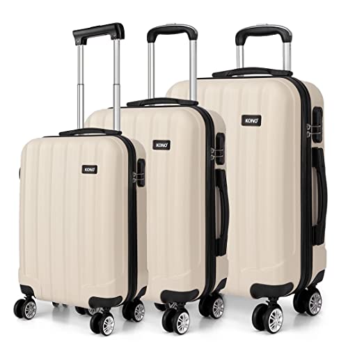 Kono Uppsättning av 3 st bagage hårt skal ABS resväska med 4 spinnhjul, Beige uppsättning, 20"+24"+28", Bagageset