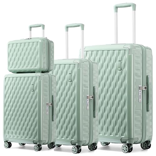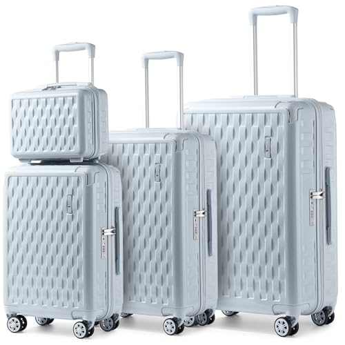 Kono 4 st resväska ABS + PC hård skal vagn, lätt resa handbagage kabinbagage TSA-lås, mode incheckat fodral handbagage med 4 spinnhjul 30 cm 50 cm 61 cm (20 tum) 24 tum (grå), Grå, Set of 4, Hårt skal