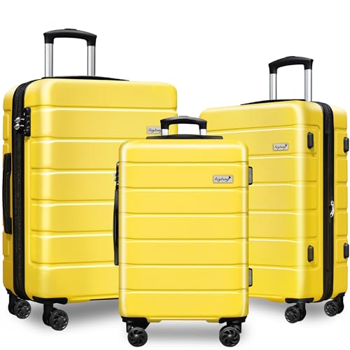 KEYTANG Classic, gUL, 3 Piece Set, Explorer lättvikt hård sida expanderbara bagage spinnhjul