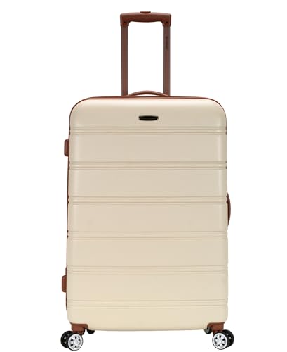 Rockland Melbourne Resväska med hårt skal, expanderbart bagage med spinnhjul, Vitt, Checked Large 28"