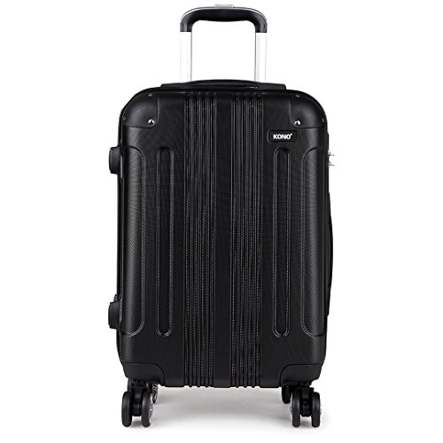 Kono 50 cm resväska ABS + PC hård skal vagn, lätt resa handbagage kabinbagage TSA-lås, mode incheckning fodral handbagage med 4 spinnhjul (svart), Svart, S(small 20inch), Hårt skal bagage