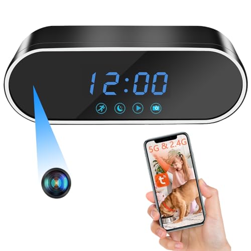 Yadayuki Dold minikamera HD 1080P Spy WiFi-väckarklocka, 2,4/5 Ghz WiFi osynlig dold spionkamera kompatibel med mörkerseende och rörelsedetektering, app fjärrövervakning