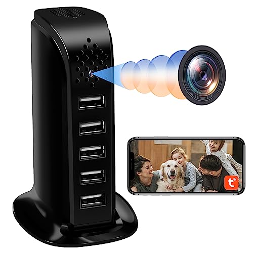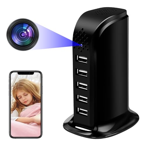 Nisanmoon 2,4/5G WiFi dold kamera med 5 USB-portar WiFi-laddare HD-kamera 1080P Spionkamera, Dold Mini Spy Wi-Fi-kamera, stöd rörelsedetektering och din smarta app fjärrvisning