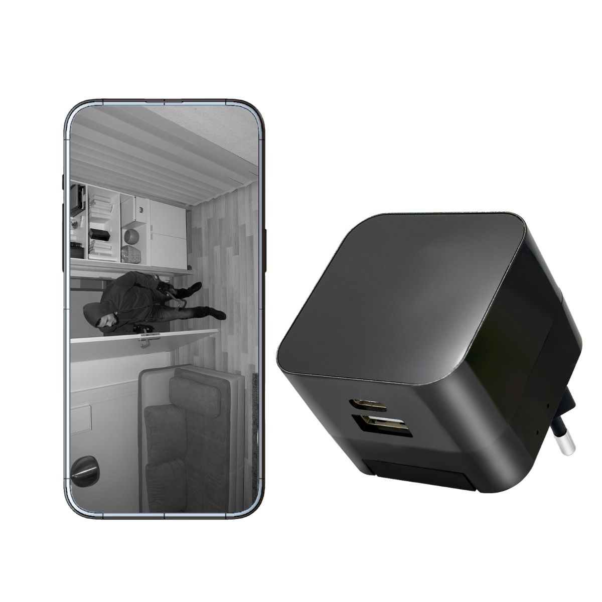 LJHHJLJH Dold kamera WiFi spionkamera, trådlös övervakningskamera, barnvaktskamera, mobilapplikation väggladdare nanny cam med USB snabbladdare uttag högupplöst 1080P