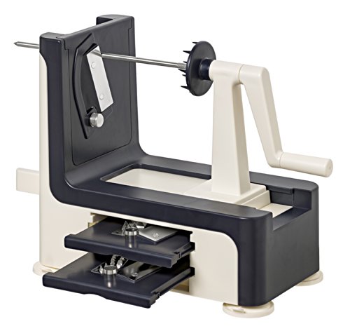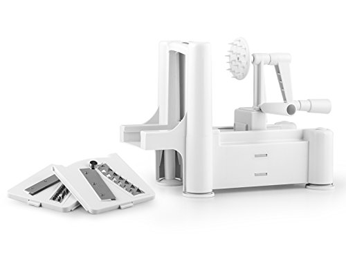 Relaxdays 10024690 Grönsaker spiralskärare vikbar, 5 blad i rostfritt stål, med vev, grönsaksskärare, grönsakspagetti, vit/grön