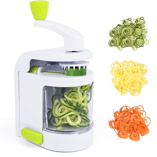 Gaethra Spiralskärare grönsaker, 4-i-1 zucchini nudlar spiralskärare med uppsamlingsbehållare, BPA-fri, zucchini-spagettiskärare för morot, gurka, potatis, pumpa, zucchini, lök