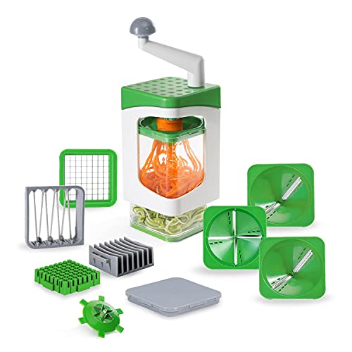 Genius Nicer Dicer Julietti spiralskärare med 13 delar - Zoodle Maker och tärningsskärare i en uppsättning för spiraler och kuber, innehåller 7 skärinsatser och uppsamlingsbehållare 1 200 ml, grön
