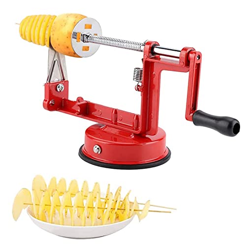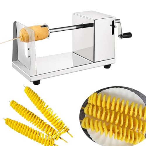 CEWROM Potatisskärare rostfritt stål spiralskärare, grönsakstwister, maskin fruktskärare, skärmaskin med vev och gummifötter, potatisspiralskärare för frukt, potatis, tornadochips