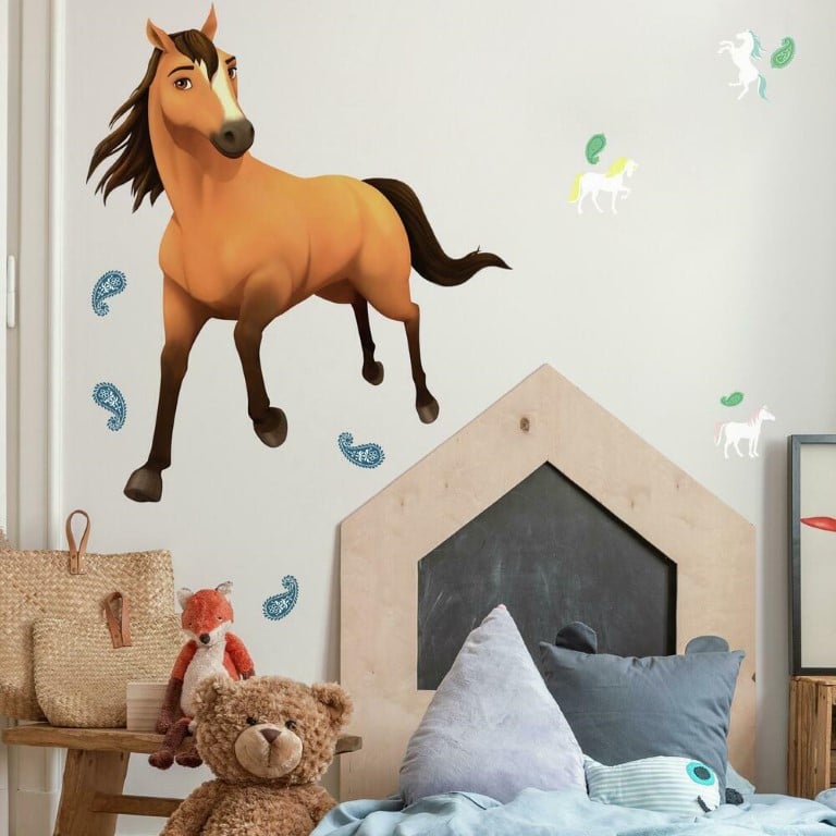 Väggtatuering – vägggenombrott med utsikt över häst med föl 90 x 74 cm – väggklistermärke