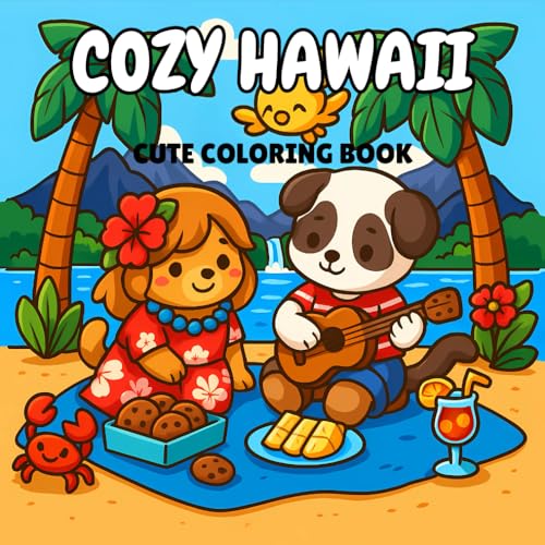 Cozy Hawaii Cute Coloring Book: 50 Adorable Island Scenes to Color and Relax — Perfect for Kids, Teens, and Adults!A Relaxing Tropical Getaway with Cute Animals, Beaches, and Aloha Spirit!