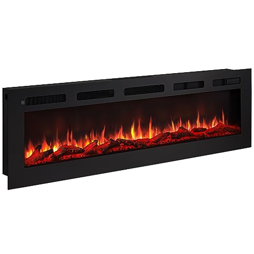 BALDERIA Elektrisk kamin Leif 60 tum | elektrisk vägg- eller inbyggd kamin 3D-lågeffekt, elektrisk uppvärmning 1 800 W | Öppen spis med fjärrkontroll, startkontroll, timer och termostat | svart