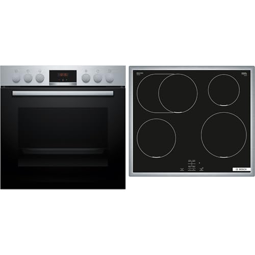 Bosch HND611LS62 inbyggd spis, set bestående av HEG517BB3 spis, 60 x 60 cm, tillverkad i Tyskland, 3D varmluft, hydrolys, LED-display & NKN645GA2E elektrisk häll, stekzon, restvärme rostfritt stål ram