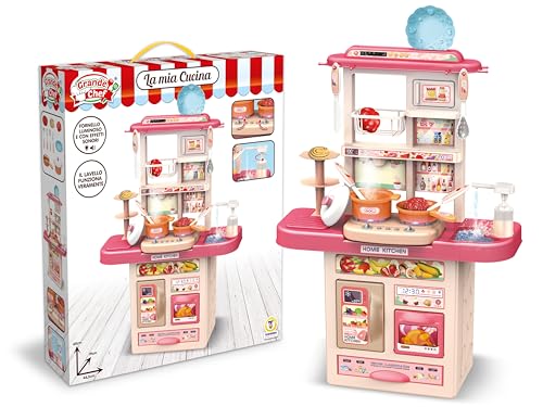 Teorema Giocattoli Teorema-Kitchen Leksak för barn, spis med ljus och ljud, riktigt fungerande handfat, med tillbehör, höjd 70 cm, flerfärgad, unik