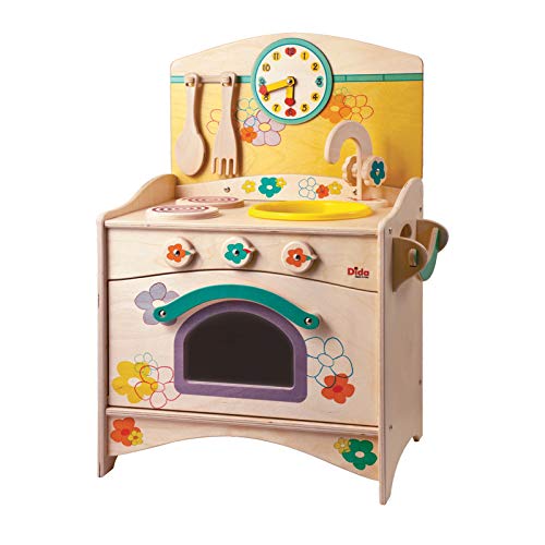 Dida - Leksak kök för barn i trä - Trio: handfat, spis, ugn (blomdekoration) - imitation spel