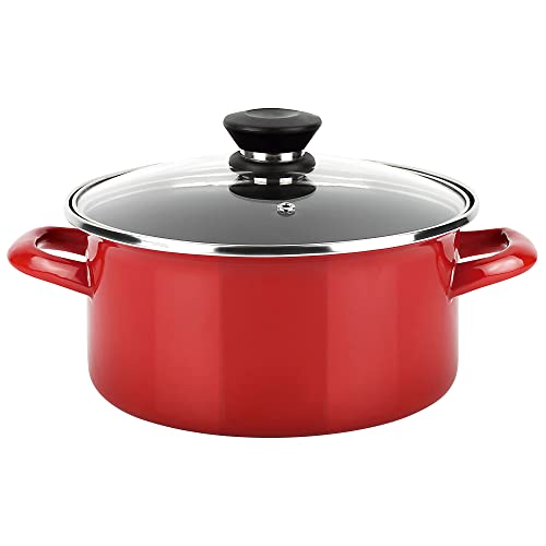 Fagor Optimax Induktionsgryta 18 cm, Kristalllock, Emaljerat stål, Non-stick ekologiskt XYLAN PLUS utan PFOA, Lämplig för alla kök, Keramisk spis, gas, Ugn, Diskmaskin, Röd