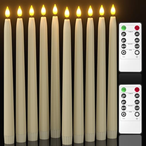 PChero Avsmalnande LED-ljus med fjärrkontroll, flamlösa flimrande fönsterljus, batteridrivna elfenbensfärgade ljus för hem, bord, spiselkrans, halloween- och juldekoration, varm gul, 10 stycken
