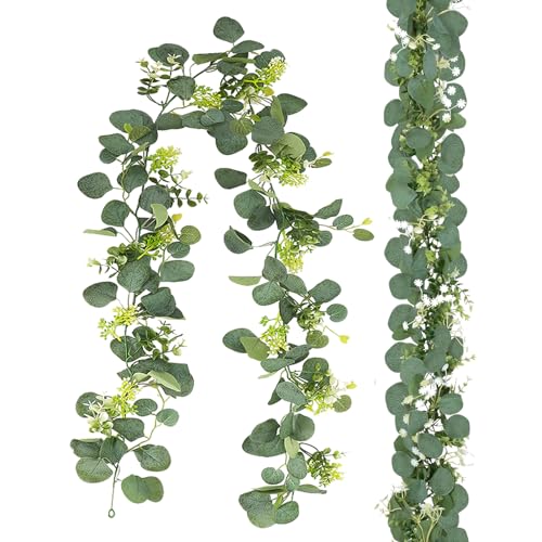 Yhjxly Konstgjord eukalyptusgirlang, eukalyptusdekoration, växtgirlang grön 180 cm pilblad, växthängande växt, för bröllop fester matbord spiselkrans trappor dörrkarmar
