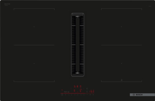 Bosch Series 6 spishäll PVQ811H26E + HEZ9VDSB2 Svart Inbyggd 80 cm Induktion zon häll 4 zon(er) Inbyggd huva