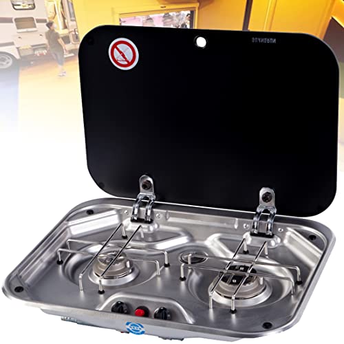 Gasspis, brännare Inbyggd husvagnshäll, gasspis med dubbla brännare spishäll m/härdat glasyta för husbil Utomhuskök Båt Husvagn Camper Knopp-kontroll Enkel att använda&Ren Multi-skydd