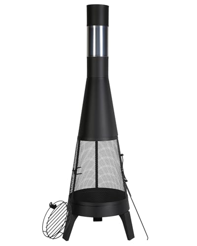 VEVOR Trädgårdskamin, φ508 x 1495 mm terrassugn, konisk öppen spis för grillning och uppvärmning, aztekugn för utomhusbruk med grillgaller, kaminkappa och rostfritt spislock, för terrass, trädgård