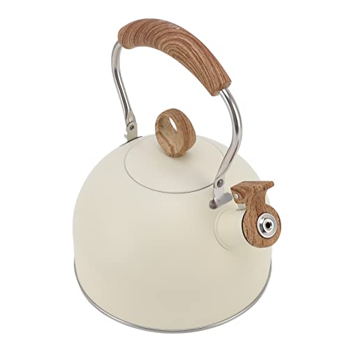 Kaffekanna, 2,5 liter, pipande tekanna, tekanna i rostfritt stål, spisplatta, säker vattenmugg, hushållsbehov med handtag för elektrisk spis, gasspis (beige)