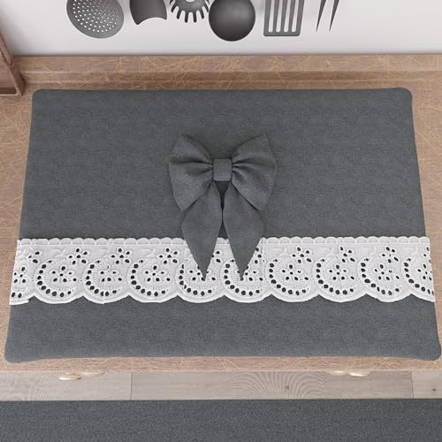 PETTI Artigiani Italiani - Spiskåpa Elegant, Shabby Chic kökskåpa i enfärgad med volang i spets sjunkande och rosetter, spisskydd i bomull, spisskydd 70 x 50 cm grå