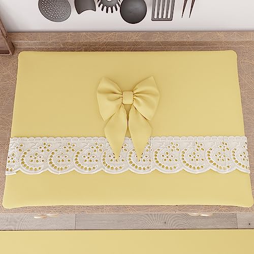 PETTI Artigiani Italiani - Spiskåpa Elegant, Shabby Chic Enfärgad Spishock med flounce i spets Sangallo och rosetter, Spisskydd i bomull, spisskydd 70 x 50 cm gul