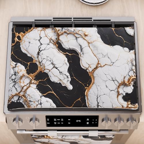 FLASLD Brandsäkra och vattentäta spisskydd, 51 × 91 cm elektrisk spisskyddsmatta, glasugnsskydd – keramiskt glas spishällsskydd – platt topp ugnsskydd, svart utan logotyp