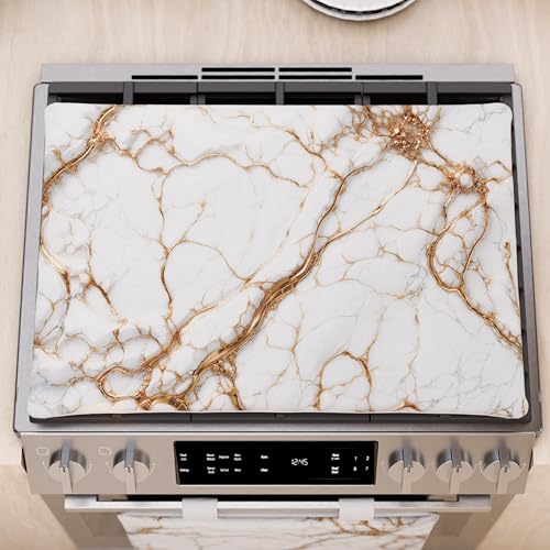 TMK ArtDeko spisskyddsplatta en del 70 x 52 cm kök spisskydd keramikhäll täckplatta spishäll skydd induktionshäll rullbar, isbitar grå