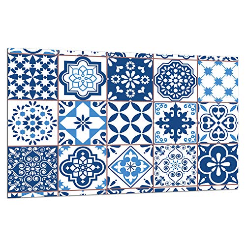 TMK | Spisskyddsplatta 80 x 52 cm 1-delad keramikhäll skydd induktion spisskydd stänkskydd glasplatta dekoration skärbräda mosaik blå