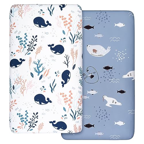 Set med 2 barnsängkläder av 100 % mikrofiber, ventilerande, 120 x 60 cm, mysiga och lätta dra-på-lakan, Oeko-tex100, passar alla madrasformer för spjälsängsmadrass, timglas, vagglakan för oval