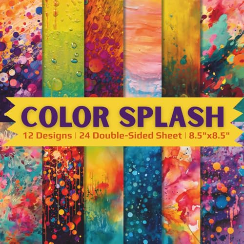 Color Splash Scrapbook Paper Craft Pad: 12 Colorful Designs, 24 Double-Side Sheets Printed on 8.5"x8.5" Sized Paper With Premium Color. Perfect for ... Wrapping, Decoupage, DIY Project, Album Etc.