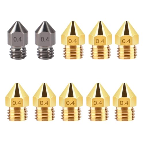 TIOPY MK8 3D-skrivare munstycken set 0,4 mm, 2 stycken härdat stål + 8 stycken mässing, för 1,75 filament 3D-skrivare Ender 3 V2/Ender 3/Ender 5 Pro/Ender 3 Neo/CR 10-serien