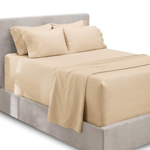 Hearth & Harbor 6-delat set med lakan – extra djupt dra-på-lakan, passar madrass från 18 – 24 rökdjup. Split King Grädde