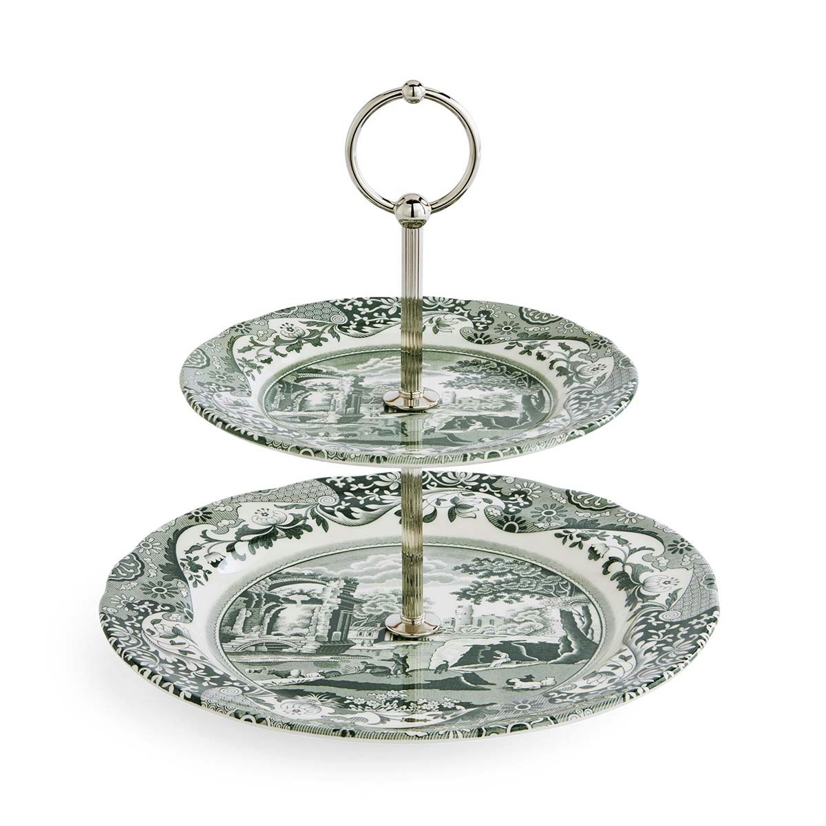 Spode - Heritage Green Italian våningsfat 2 våningar 23,5 cm grön/vit