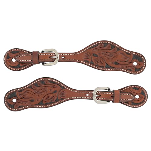 Dölj och dryck, robust hållbart läder enkel sporre remmar (2 delar), cowboy outfit stövlar, rodeo, västernlig, utrustning, klassisk vintage stil, handgjord (bourbon brun)