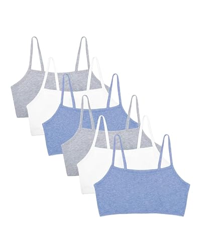 Fruit of the Loom dam spaghetti Strap bomull sport bh, spaghetti strap bomull tröja, sportbehå (4-pack), Heather grå/vit/vit/blå heather 4-pack, 38