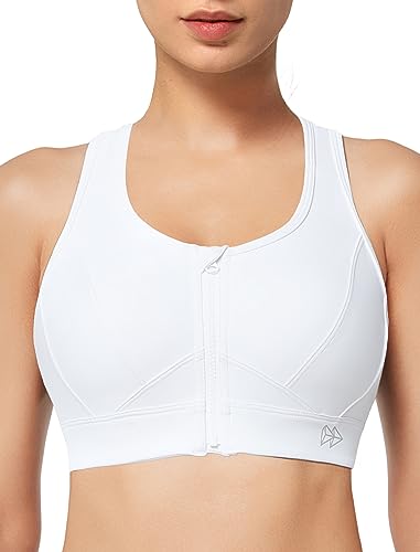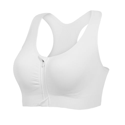 YIANNA Dam högeffektiv sport-bh plusstorlek dragkedja främre fäst-BH:ar vadderad justerbar rem, Vitt, XL